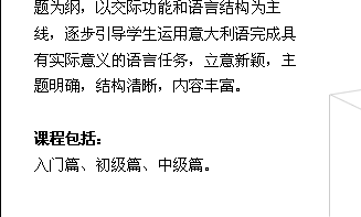 适用人群:意大利语初学者,外企求职者,准备意大利语考级的学生,以及想赴意大利留学、观光、工作等人士。