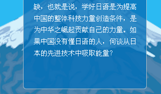 课程均以日本社会为背景,衣食住行及各项 社会需要均从日本的实际和习惯出发,可为 准备赴日工作或学习的人,或有机会经常接 触日本朋友的人提供最基础的语言帮助。
