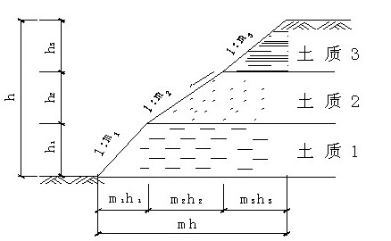 当沟槽或基坑中土质类别不同,且深度大于1.5m时,应根据不同土质类别的放坡系数、土质厚度求得综合放坡系数,然后再求土方工程量。