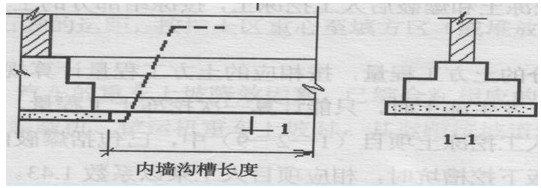 内墙沟槽,按图示基础(含垫层)底面之间净长度计算;