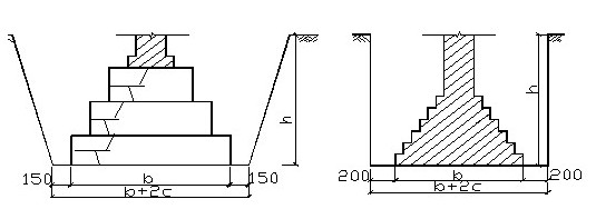 (3)不放坡加两面挡土板如图1-3(c)所示: