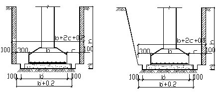(3)不放坡加两面挡土板如图1-1(c)所示: