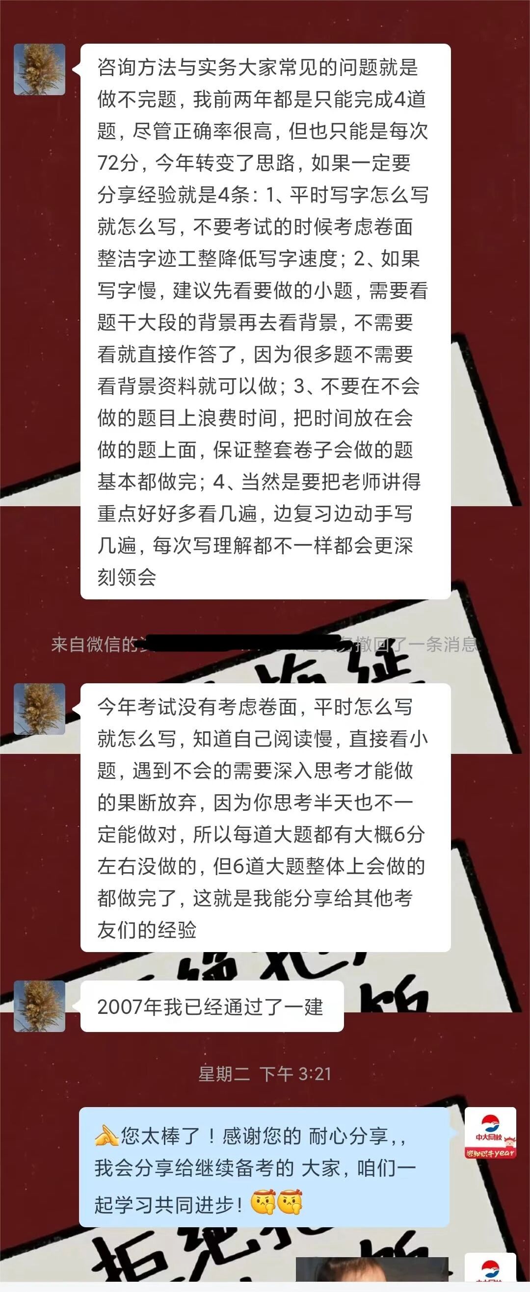 恭喜中大网校学员们取得的好成绩!以下是中大网校咨询工程师学员的考后好评反馈(仅展示小部分):